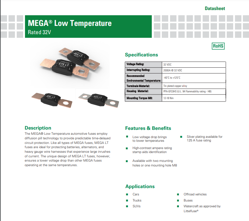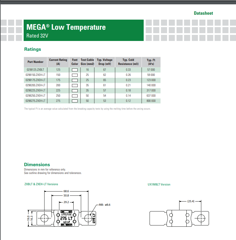 Littelfuse力特保險(xiǎn)絲0298 MEGA螺栓叉栓式保險(xiǎn)絲片32V汽車保險(xiǎn)絲