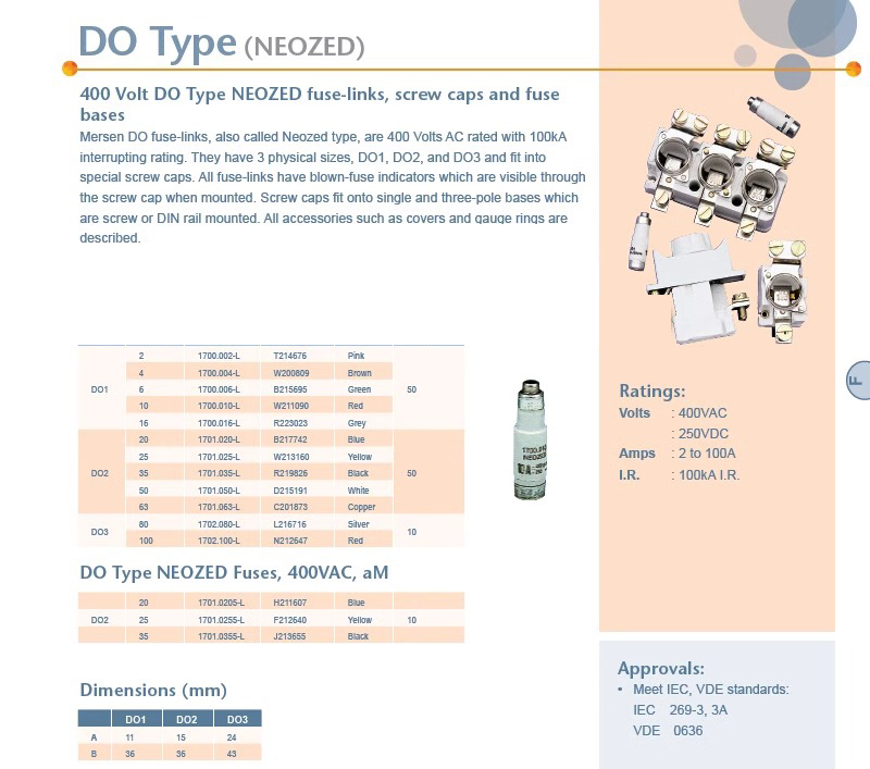• MERSEN熔斷器 D02GG40V20/V25/V35 D02GG40V40/V50/V63