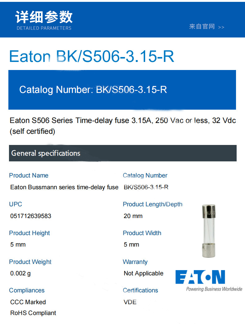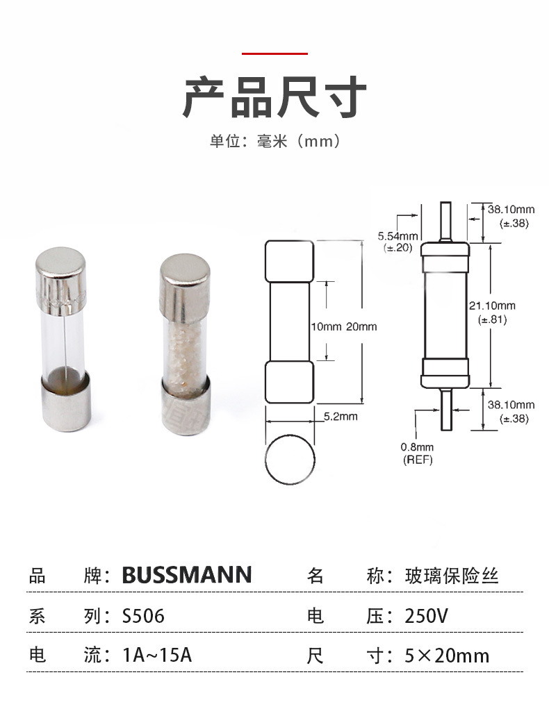bussmann巴斯曼玻璃保險絲S506-2-R