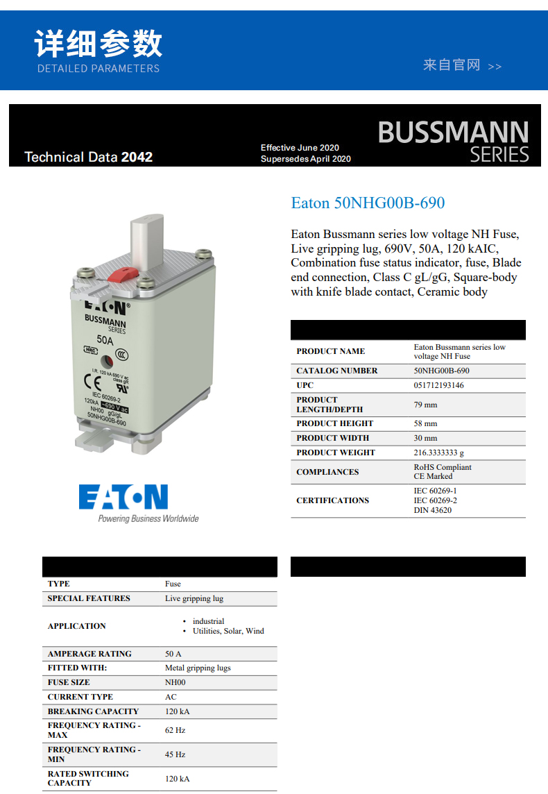 • BUSSMANN巴斯曼熔斷器NH000 50NHG00B-690