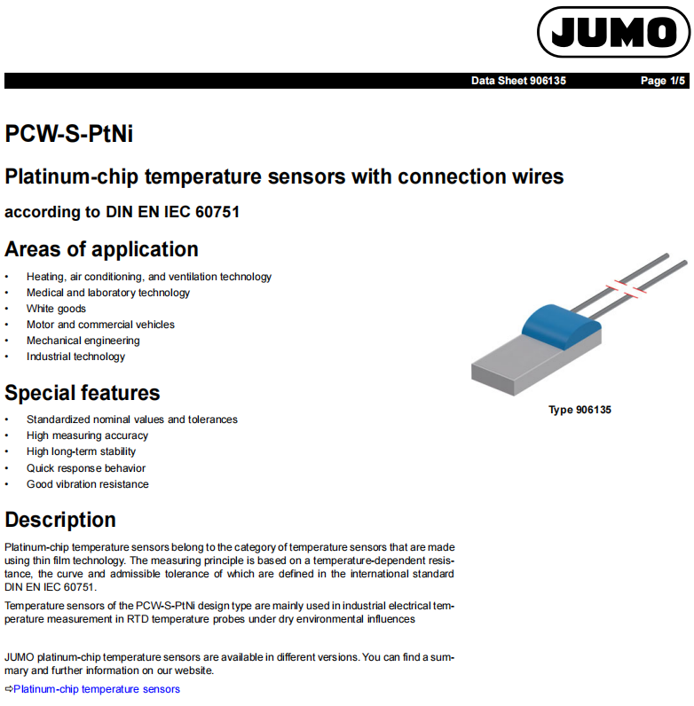 • JUMO久茂鉑電阻pt100/pt1000溫度傳感器 906135