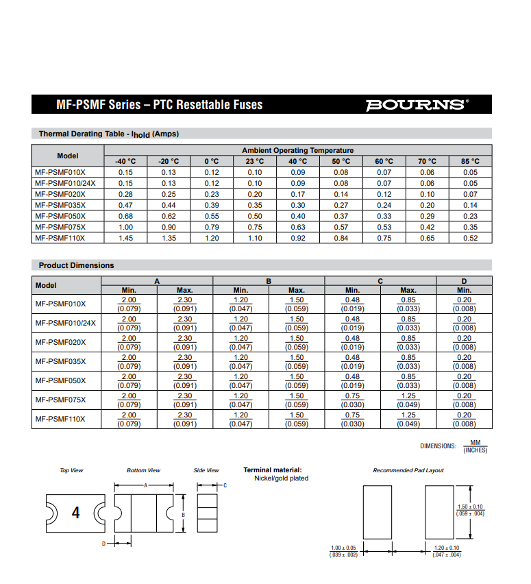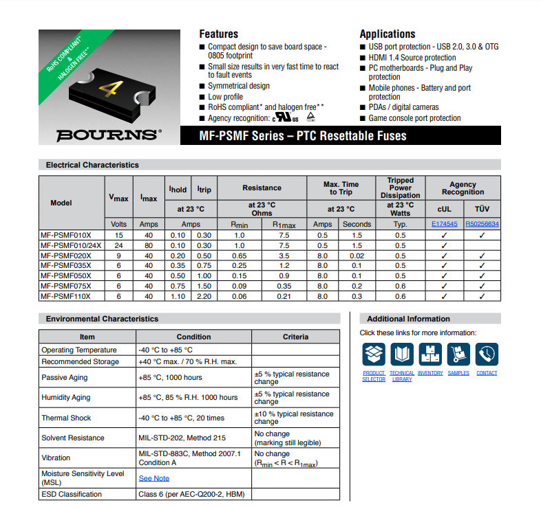 • Bourns伯恩斯自恢復(fù)保險絲 MF-PSMF020X
